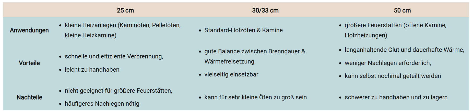 Für Haushalte wird trockenes oder kammergetrocknetes Holz empfohlen, da es eine hohe Effizienz und umweltfreundliche Verbrennung gewährleistet.
